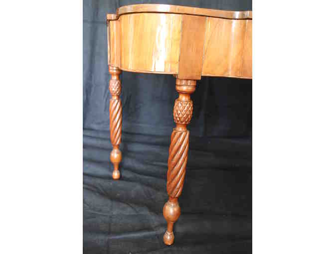 American Sheraton mahogany console table with carved pineapple and rope turned legs. Circa 1830  The Sheraton style was inspired by the Louis XVI style and was extremely popular in the early 19th century.