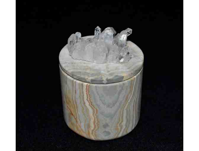 Stone jar as pictured. Measures 3 inches x 3 inches