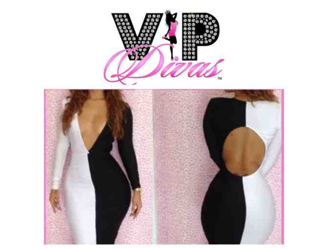 Brand New "Bombshell Diva" Black and White strech bodycon dress from www.vipdivas.net adult size small. Retail price on site for $45.00