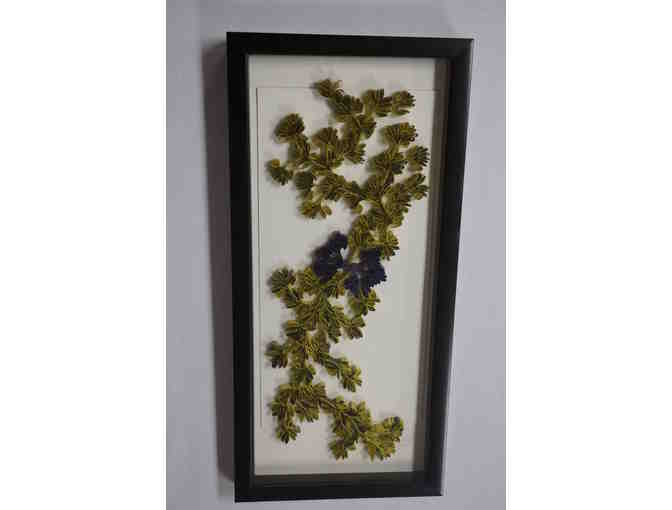 This unique paper art piece is by Jaime Bennati, Upper School Visual Arts faculty member. Matted and framed, the piece measures 10"x21".