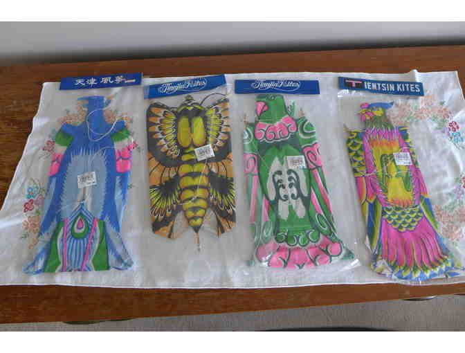 Selection of four paper and bamboo kites. New in packaging.