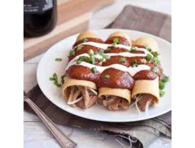 Enjoy your free (from cooking) time and let the expert tackle this time consuming delicious addition to any Mexican meal. All moles are very time consuming, labor intensive and require many ingredients. The winner of this auction will receive delicious corn tortillas rolled with chicken, cream onion and cheese, and topped with rich chocolate flavored mole sauce for four (4) people.