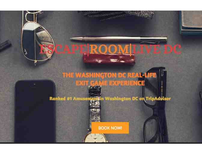 This auction is for four (4) tickets to Escape Room Live D.C.'s large room: "The Double Agent's Digs" in Glover Park.
