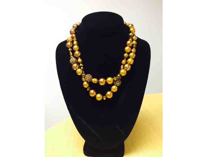 This one of a kind double strand necklace by Florida designer, Milli Hershman features bronze pearls and gold vermeil beads. This award winning designer featured in boutiques and galleries throughout the country finds inspiration from her travels around the globe.