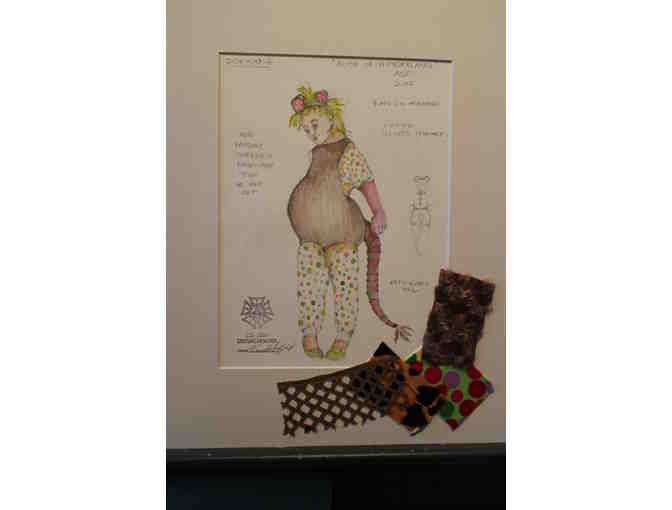 Follow the rabbit down the whole and end up in Wonderland. Take home a piece of the magic with this one of a kind costume rendering of Alice in Wonderland by costume designer Pamela Scofield. This rendering is matted and waiting for framing. This rendering comes with a 15% off custom framing by Stonehenge.