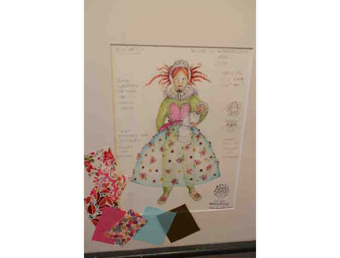 Follow the rabbit down the whole and end up in Wonderland. Take home a piece of the magic with this one of a kind costume rendering of Alice in Wonderland by costume designer Pamela Scofield. This rendering is matted and waiting for framing. This rendering comes with a 15% off custom framing by Stonehenge.