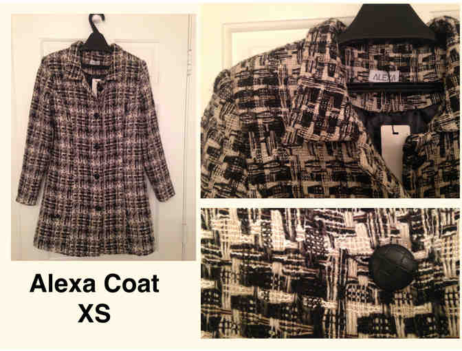 A casual, light coat, mid-length. Tweed-like fabric in cream, beige, and black, very soft, 20% wool. Dress it down for a school pick up or dress it up for a romantic date!