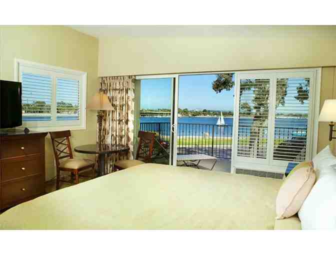 The Bay Club Hotel and Marina is located on Shelter Island, San Diego's Hawaiian Isle. The hotel is surrounded by the San Diego Bay, which not only offers stunning sunset views, but also recreational activities such as fishing and sailing. The island is a prime spot for exploring the paths that overlook the water, and the Bay Club Hotel and Marina San Diego has free bicycle rentals to make your trailblazing more exciting. The Bay Club Hotel and Marina also has an outdoor pool and hot tub to provide further amusement and entertainment. After a day of touring the island or venturing out to the local San Diego attractions, guests can relax with a cocktail and a waterfront view of the marina at the hotel's Club Bar and Grill.