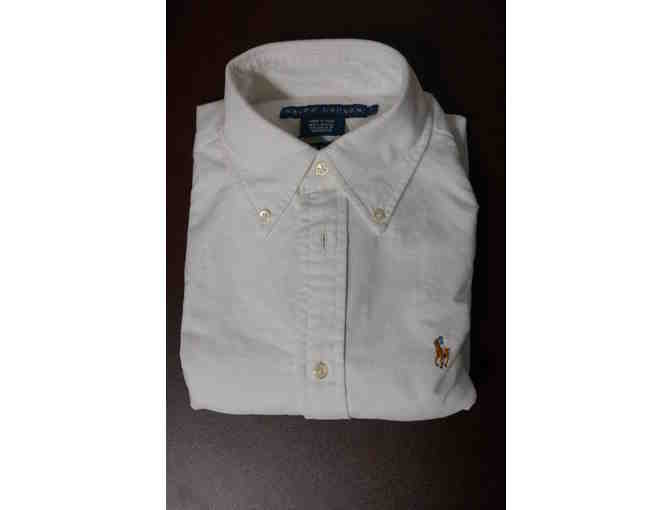 Dress up any outfit with this Ralph Lauren white oxford shirt, women's size 2, super slim fit.