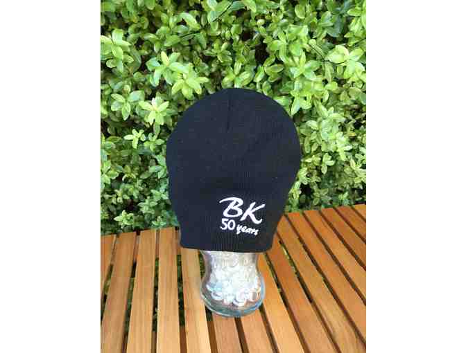 The very last black beanie is ready for you! Black beanie with bright white embroidery is one size fits most.