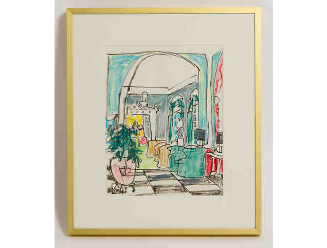 Kathy Boland Framed Drawing of Greenbrier Lobby