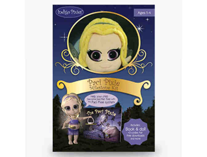The Paci Pixie Milestone Kit Help your child become pacifier free in a fun way with the Paci Pixie System. Paci Pixie Milestone Kit includes: 15? Paci Plush doll Paci Pixie book Step by Step Indigo System Frameable Certificate of Completion Paci Pixie Bookmark Codes for song, 3D animation and audiobook