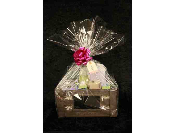 Enjoy Pampering Yourself at Home With Spa & Relaxation Items, Make-up and Shaving Kit. (Includes, spa mask, shower cap, sap socks, Glam Glow make-up, votive candle, Goatmilk & olive oil soap with sponge from Saint Johns Sponge and shaving kit from Harry's Shaving)