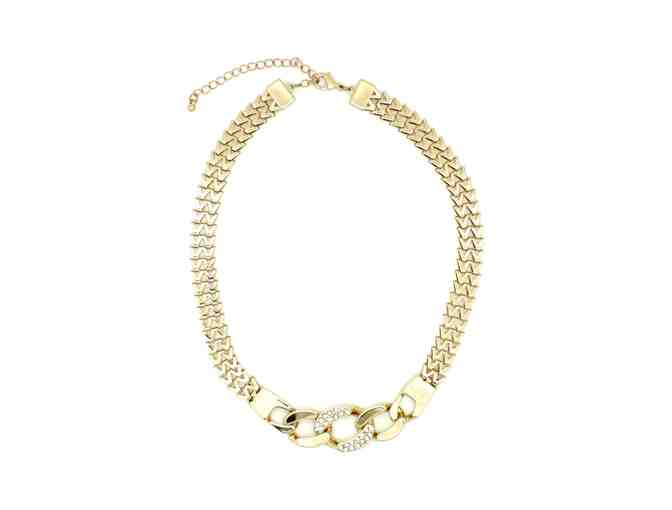 - Gold-tone pave rhinestone accented chain link necklace- Lobster clasp