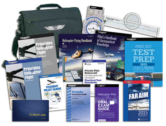 ASA's Helicopter Student Pilot Kit provides the books and supplies necessary to complete training and ensure FAA regulatory requirements are met. The perfect all-in-one training solution for instructors and students, the Helicopter Student Pilot Kit is anchored by the Principles of Helicopter Flight textbook and syllabus by Wal Wagtendonk and the FAA's Helicopter Flying Handbook. The industry standard ASA FAR/AIM and a Private Pilot Test Prep book assist students in preparing for the FAA Knowledge Exam. The Practical Test Standards, Private Pilot Oral Exam Guide, and Helicopter Oral Exam Guide help ready students for their Oral and Practical exams and ensure a successful checkride. Additional items in this kit include a fiberboard E6-B flight computer and Ultimate Rotating Plotter for flight planning, a Standard Pilot Logbook for keeping track of flight time, and a handsome pilot briefcase.