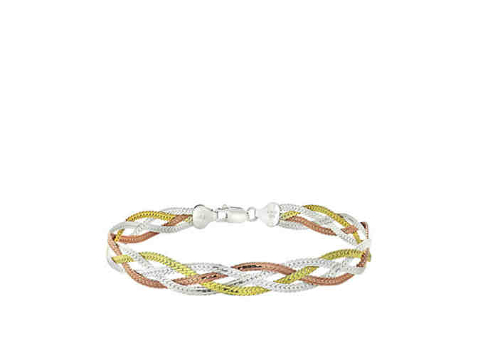 The shimmering color palette and unique design speak for themselves with this exquisite Lord & Taylor bracelet. Featuring an intricate braided construction, three strands are woven together; a silver-tone strand, a gold-tone strand, and a rose gold-tone strand.