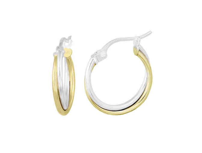 18Kt Gold and Sterling Silver Round Hoop Earrings