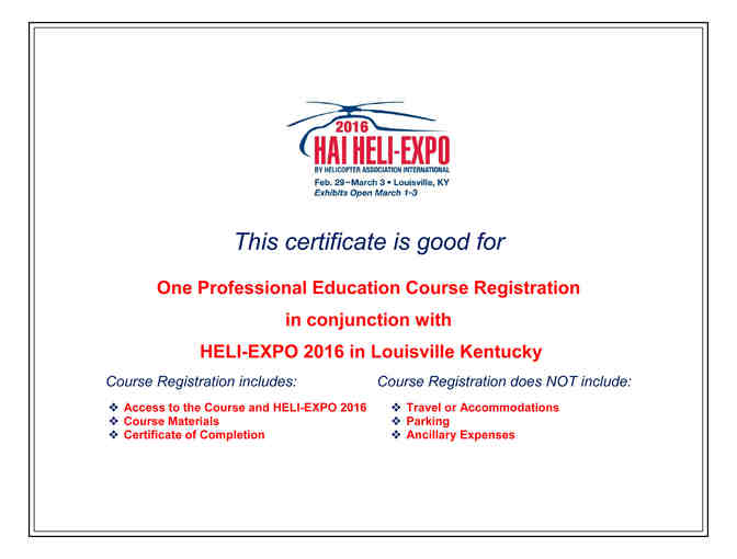One Professional Education Course Registration in conjunction with HAI HELI-EXPO 2016 in Louisville, Kentucky.