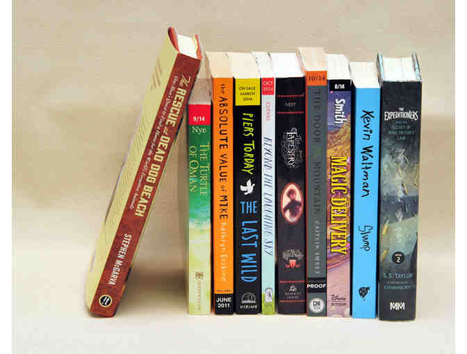 Perfect for tween boys who like to read. Some are Advanced Galleys - all pristine. Titles include "The Tapestry," "The Rescue of Dead Dog Beach," "The Door in the Mountain," "Slump," "The Expeditioners and the Secret of King Triton's Lair," "The Absolute Value of Mike," "The Turtle of Oman," "Beyond the Laughing Sky," "Magic Delivery," and "The Last Wild."