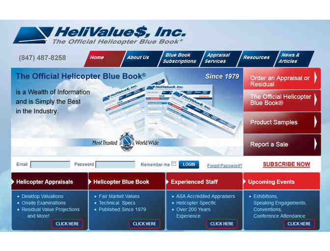 $1,500.00 toward an appraisal service or subscription to The Official Helicopter Blue Book®. Visit our website at www.helivalues.com for more information on our appraisal services and subscriptions.