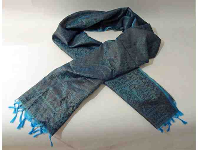 Beautiful, dark teal and blue Indian scarf made of 100% silk.