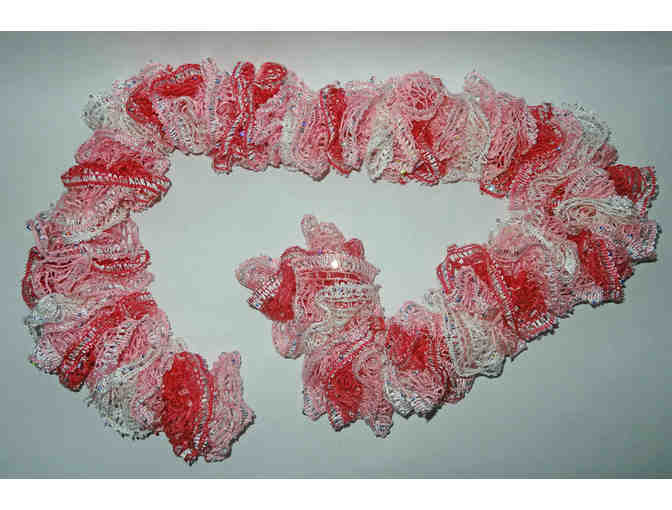 Gorgeous pink and white, handmade girl's scarf with silver sparkles.