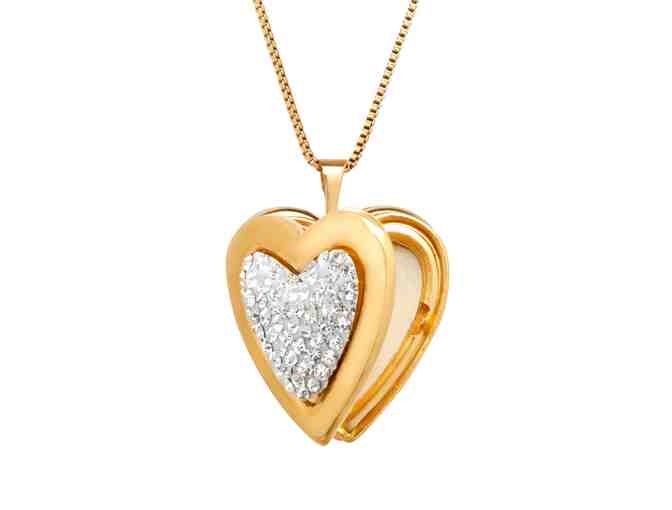 Show your sweet side with this romantic sparker. Lined with shimmering white Swarovski crystal in a 14K gold over sterling silver heart pendant, this flawlessly crafted locket will accent any look. Piece measures 1 by 3/4 inches.