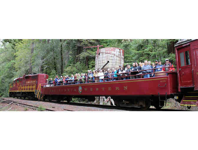 This is your pass for four, round trip on the historic Skunk Train from either Fort Bragg or Willits to the midpoint North Spur, and return.