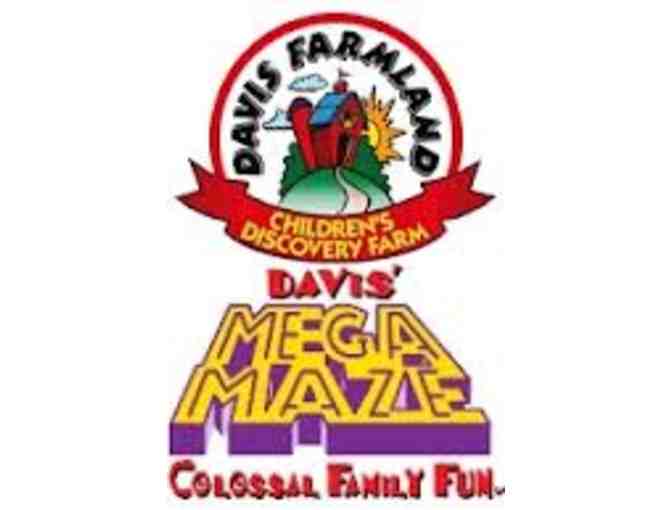Admits up to 2 guests to Davis Farmland or Davis Mega Maze. Children under 12 must be accompanied by an adult. The Farmland is ideal for children 1-8 and the Mega Maze is ideal for children 5 and older. Pass expires last day of operations 2015.