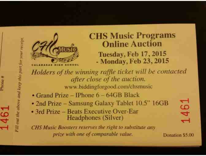 Win an iPhone6 or Samsung Tablet! Five Tickets for the Music Boosters Drawing!