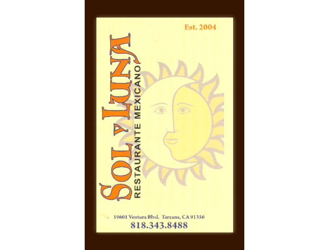 We invite you to step into a Hidden Mexican gem in the city of Tarzana and enjoy a bit of Mexico here in Los Angeles. The impressive wall mural displayed in the dining room depicts famous Mexican icons such as Frida Kahlo, Pancho Villa, & Emiliano Zapata. Treat yourself, family, & friends to a unique Mexican dining experience. Freshness is one of the secrets to the flavorful family recipes we so proudly offer you. Here at Sol y Luna, it is our pleasure to serve you the highest quality food & service surrounded by fine Mexican Folk Art in a warm and friendly inviting ambience.