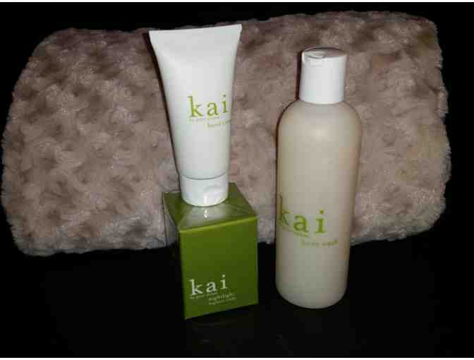 Cozy up in this sumptous large chenille blanket, which is approx. 48" x 68," and enjoy three Kai relaxing products: