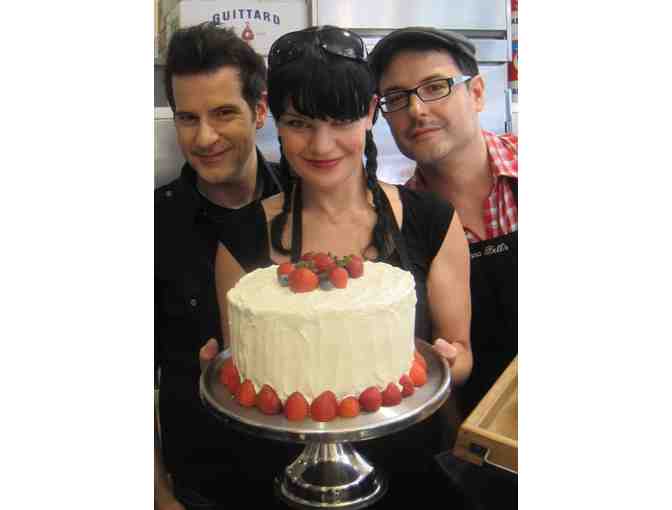 Enjoy a 9” Three Layer Cake with your choice of cake flavor and butter cream from Donna Bell’s Bake Shop featuring homemade southern desserts and savories. Pauley Perrette (Abby, NCIS on CBS) and her two best friends, Darren and Matthew, opened Donna Bell’s Bake Shop in the Hell’s Kitchen, named after her mother and using scrumptious southern recipes.