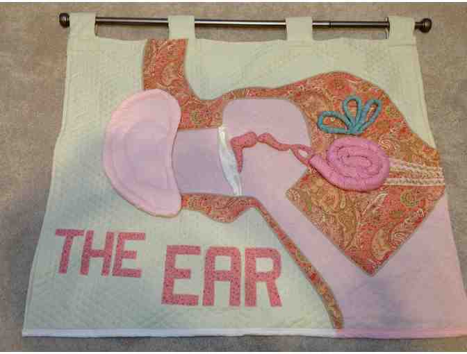 Meticulously stitched and vibrantly put together, this wonderful handmade quilt featuring the human ear will surely liven up any household or business practice. Item comes with hanging apparatus as seen in picture.