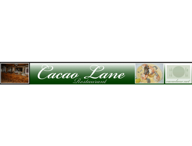 Take a trip to Cacao Lane located in historic Ellicott City, MD.  The buildings for the restaurant sit on three lots, parts of which are 165 years old.  Enjoy Filet Mignon, Rockfish Gloria, Bouillbaise, or another of their exquisite entrees.  Appetizers, soups, and salads are also served.  Cacao Lane also offers Lite Fare, Banquet and Sunday Brunch menus.  Yum!