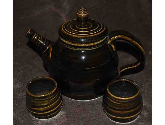 Beautiful pottery tea set (pot and two cups) by Joe Blair.