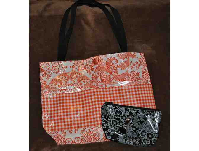 Oilcloth tote bag and make up bag in BTW colors.