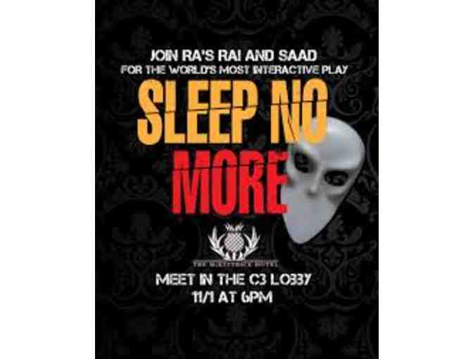 A Maximillian's list reservation for two to attend Sleep No More. Reservations include front to the line access, complimentary coat/bag check, and a resrved table in Manderley Bar.