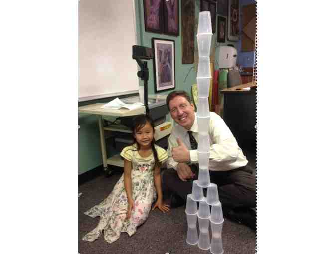 Today is your child's day! He or she will be principal for the day which includes your child being picked up at home, a trip to STARBUCKS for some hot cocoa, making the morning school announcements over the loud speaker, selecting a spirit day, having his/her name on the marque, lunch with a friend at Applebee's with one friend, purchasing a book that the child can donate to the school library in his/her name, an ice cream sundae party for the winners WHOLE CLASS, and participating in all principal activities and responsibilities for the day including a walk around to ALL classes for a quick vist as "principal for a day.".