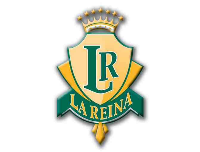 Everything La Reina! Gift Tote, Men's Polo Size L, La Reina Gils T Size M, Ladies Black Crown T Size L, Green Plaid PJ's Size XS, and Crown Tumbler