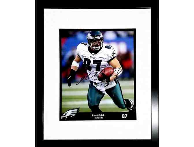 Brentm Celek is a tight end for the Philadephia Eagles football team. Going into the 2014 season, his eighth in the NFL, Celek stood second in Eagles team history in three tight end categories -- all behind career leader Pete Retzlaff -- in receiving yards (4,050), receptions (322), and touchdowns (26).
