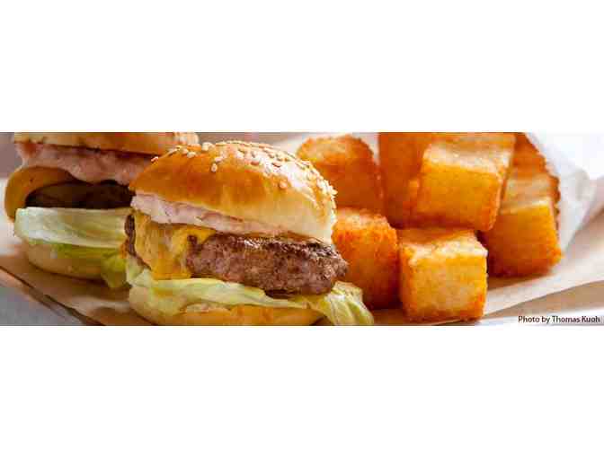 Take-and-bake: Just how it sounds, you place your order in advance, then pick up, take home, and bake... and serve sliders and potato tots warm from your oven!