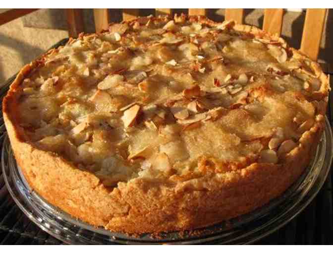Using an old German recipe, the cake is made of apples and almonds with a crisp crust.