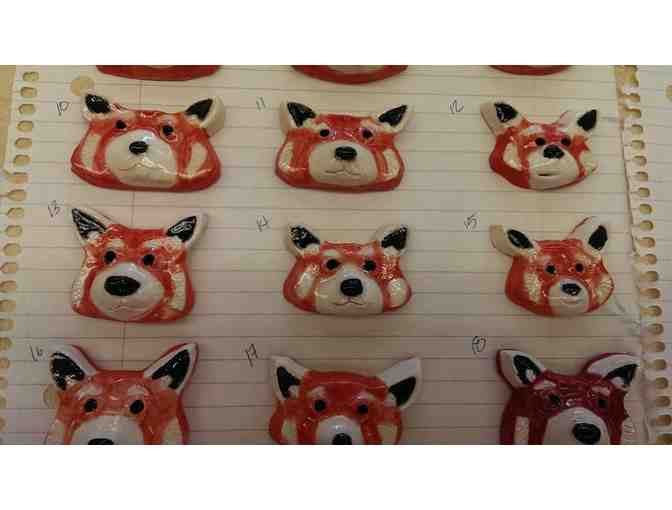 This Red Panda medley includes 3 Red Panda pottery magnets that were hand crafted by artist Corri Osbourne, long-time Red Panda Network volunteer and zookeeper extraordinaire. The magnets are mid-fired ceramic pieces, with unique red panda faces (individually hand-painted) with underglaze and finished with clear glaze.