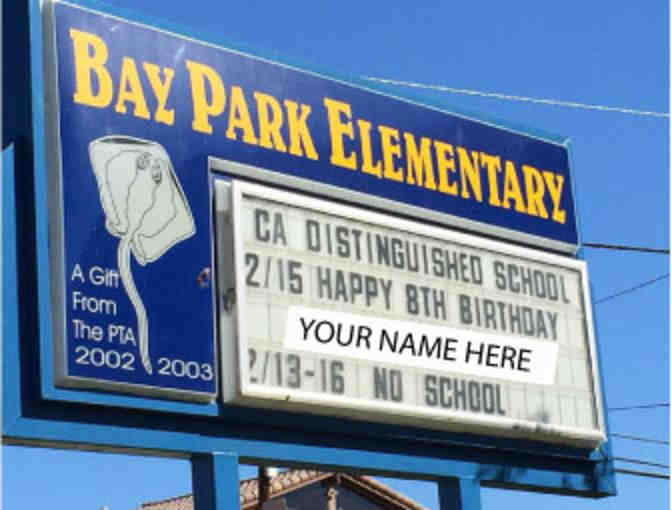 Help to make your child's birthday extra special with his/her birthday announced on the Bay Park Elementary Marquee!