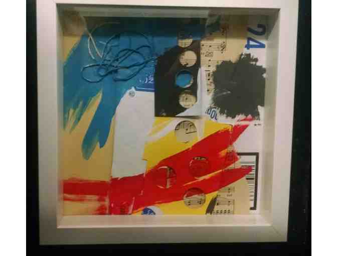First seen at our very own Mulberry Made Art Show, "Who put Ketchup on My Cheese" is a framed mixed media piece by Kevin Dyche. It was inspired by Kevin's love of swiss cheese.