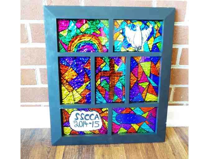 Don't miss the chance to own this lovely pice of artwork, created by the kids in the St. Anselm Program at SSCCA. The project was creatively made by decorating glass and laying it over crinkled aluminum foil. What a great piece to add to your collection!