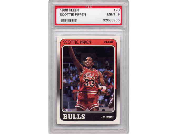 A nearly flawless example of the 1988 Fleer Scottie Pippen rookie #20 card in PSA 9 MINT condition with great centering, color, corners and gloss