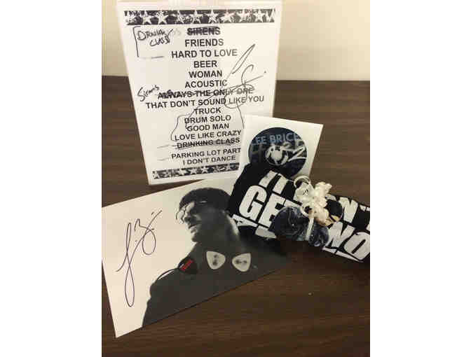 Lee Brice Fan Package includes one signed 8x10 photo, one "I Don't Get No Better" Lee Brice T-Shirt, one Hard 2 Love CD, 3 Lee Brice guitar picks and one signed Lee Brice set list.