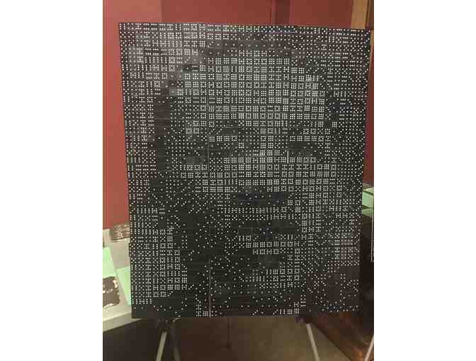 This creative piece of art was constructed by the 4th grade class at St. John the Apostle Catholic School. The entire art piece is made up of 2" dominos. The signatures of the participating students is located on the back.